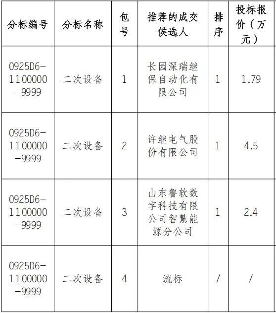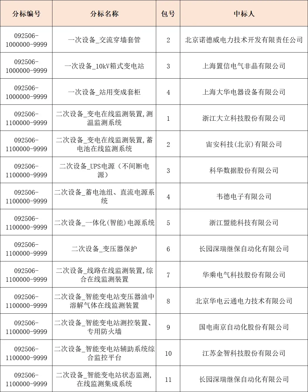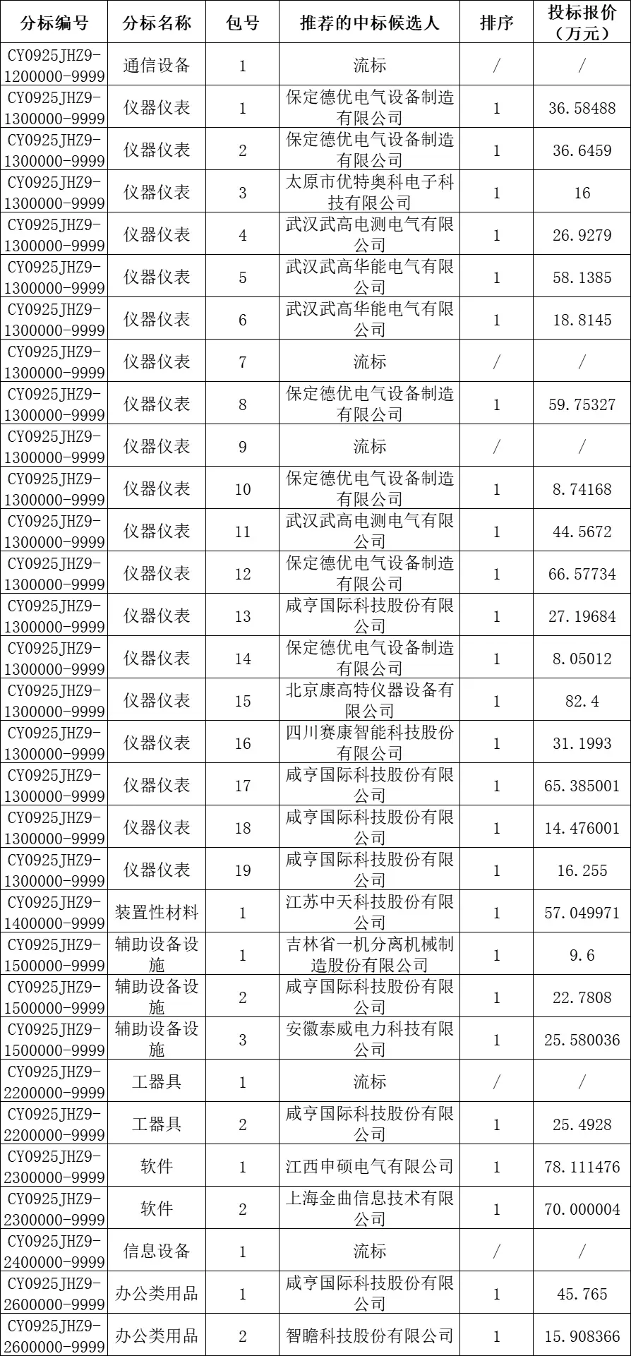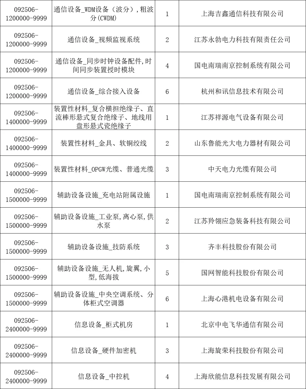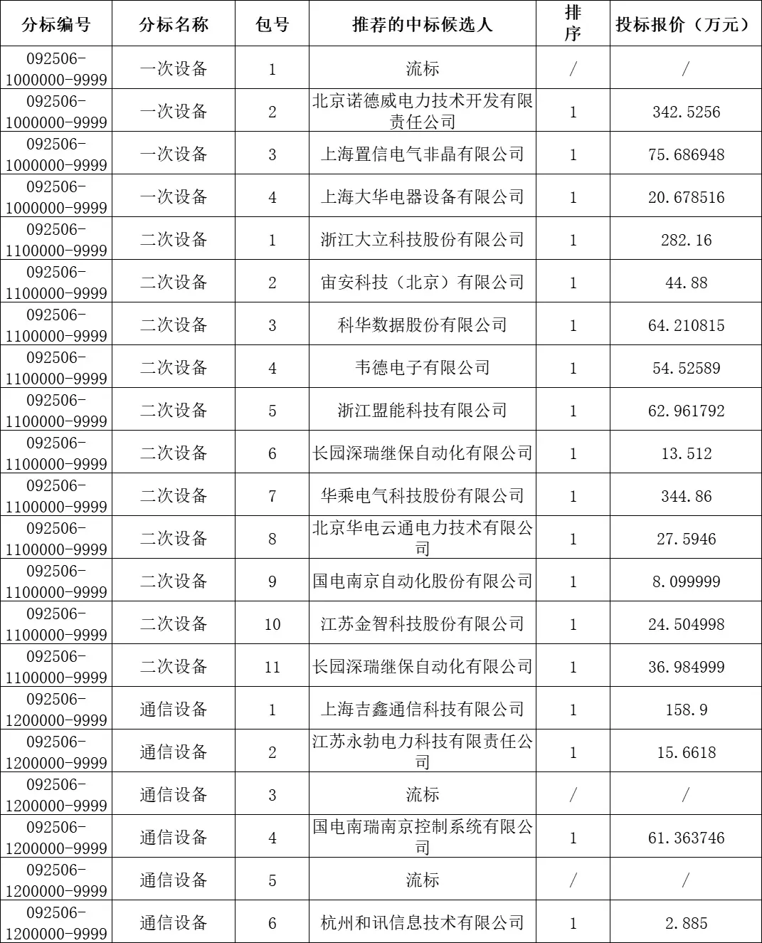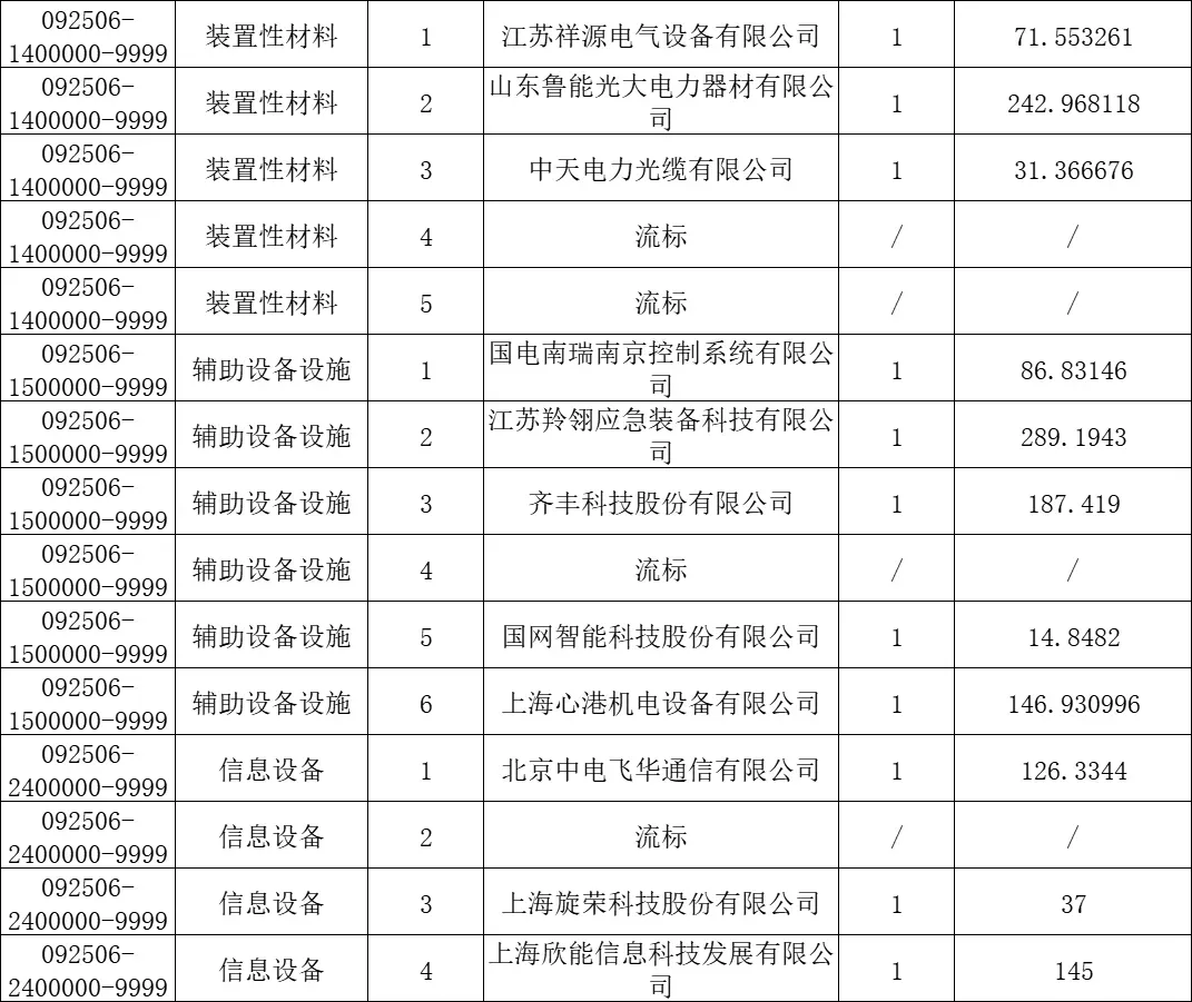 国网上海市电力公司2025年第六次物资招标采购的中标候选人公示活动已经结束。现将中标人名单公告如下: