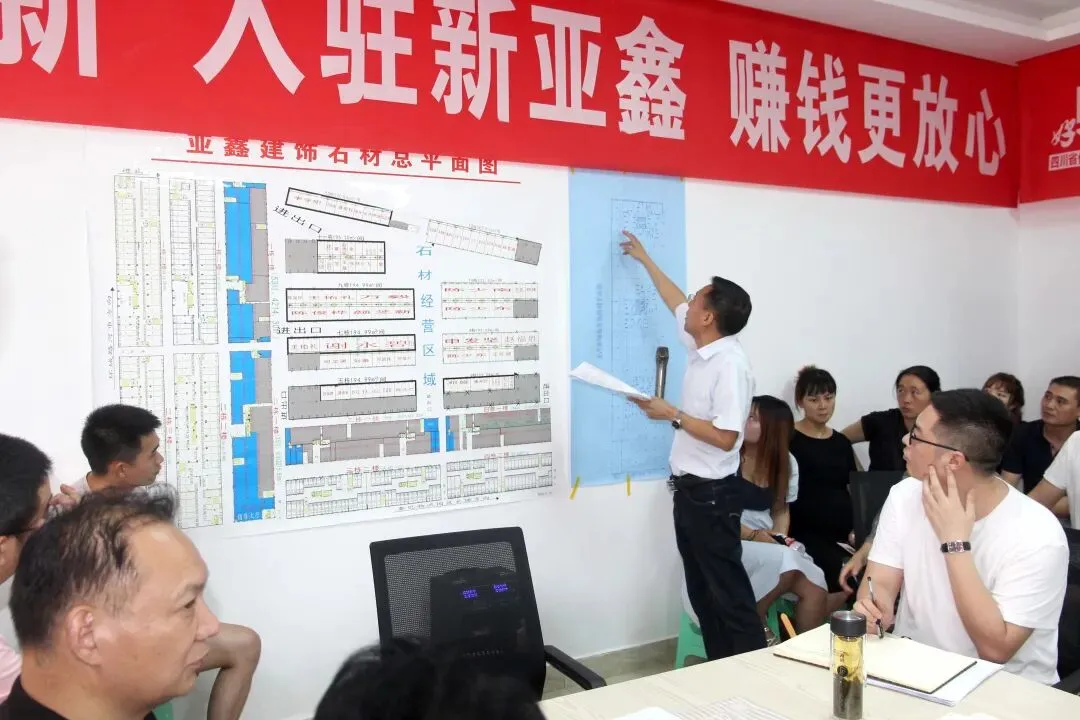 6月29日,准备入驻新亚鑫市场的建饰材商户选铺工作在新亚鑫建饰石材市场办公楼2楼会议室正式启动。上午8点30分,商家按排号类别5人一组有序进入选铺现场,选铺现场异常火爆。截止6月30下午18时,已有102家商户成功选铺,选定商铺359间,面积32632.82平方米,选铺工作取得圆满成功!