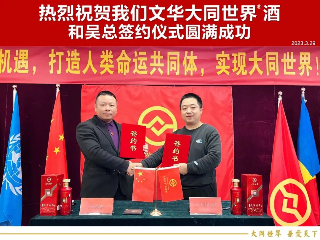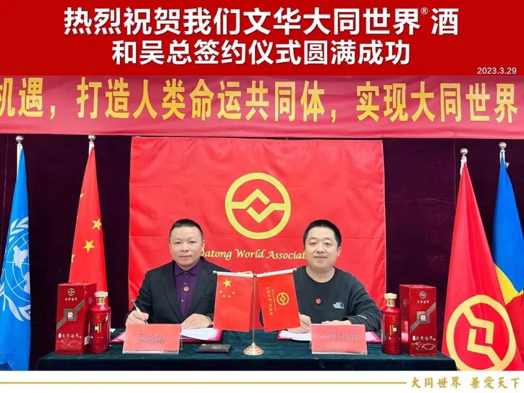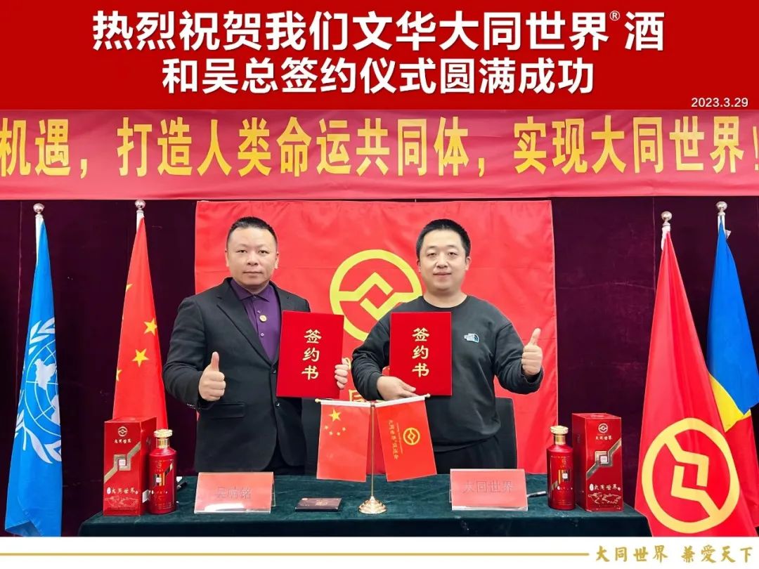 仪式上,双方签署《大同世界酒合作协议》。这也预示着,未来双方将围绕大同世界酒携手展开深层次合作,聚合品牌效应,推动共赢,共同通过大同世界酒传播大同世界文化。此次,大同世界酒与吴总签署合作协议,为未来的合作提供了更广阔的想象空间。以公益之心,创未有之业!