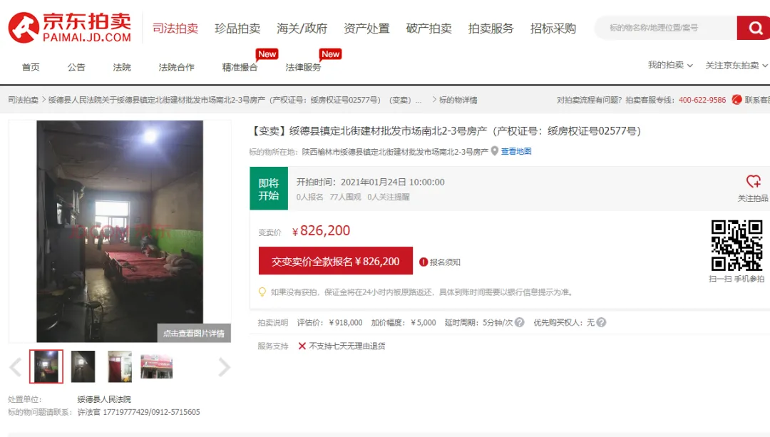 想在建材市场内,拥有属于自己的小店吗?1月24日10时至3月25日10时,绥德县建材批发市场里有一处商铺,将在京东网司法拍卖平台上进行变卖。商铺面积122㎡,变卖起拍价82.62万元。有意向就快来了解!