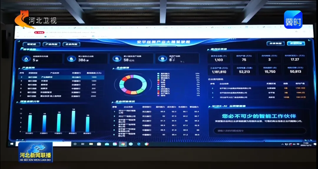 河北联通工业互联网平台专家 王君楠:为安平丝网企业高效搭建数字化平台,实现对企业生产、能耗、库存等数据的实时采集,再通过数字金融平台把这些数据跟银行进行对接,从而打通中小企业和银行之间的产融桥梁。
