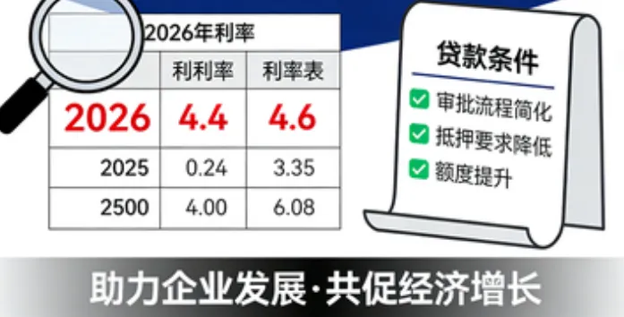 2026企业贷款利好集中释放:利率下调叠加条件放宽,融资环境持续优化2026年作为“十五五”规划开局之年,稳增长、促实体成为经济工作核心基调。 在此背景下,金融支持实体经济的力度持续加码,企业贷款领域迎来多重利好:多家银行主动下调贷款利率,叠加监管政策优化带来的申请条件放宽,共同为企业尤其是中小微企业注入金融活水,有效缓解融资难、融资贵问题,助力经济高质量发展。