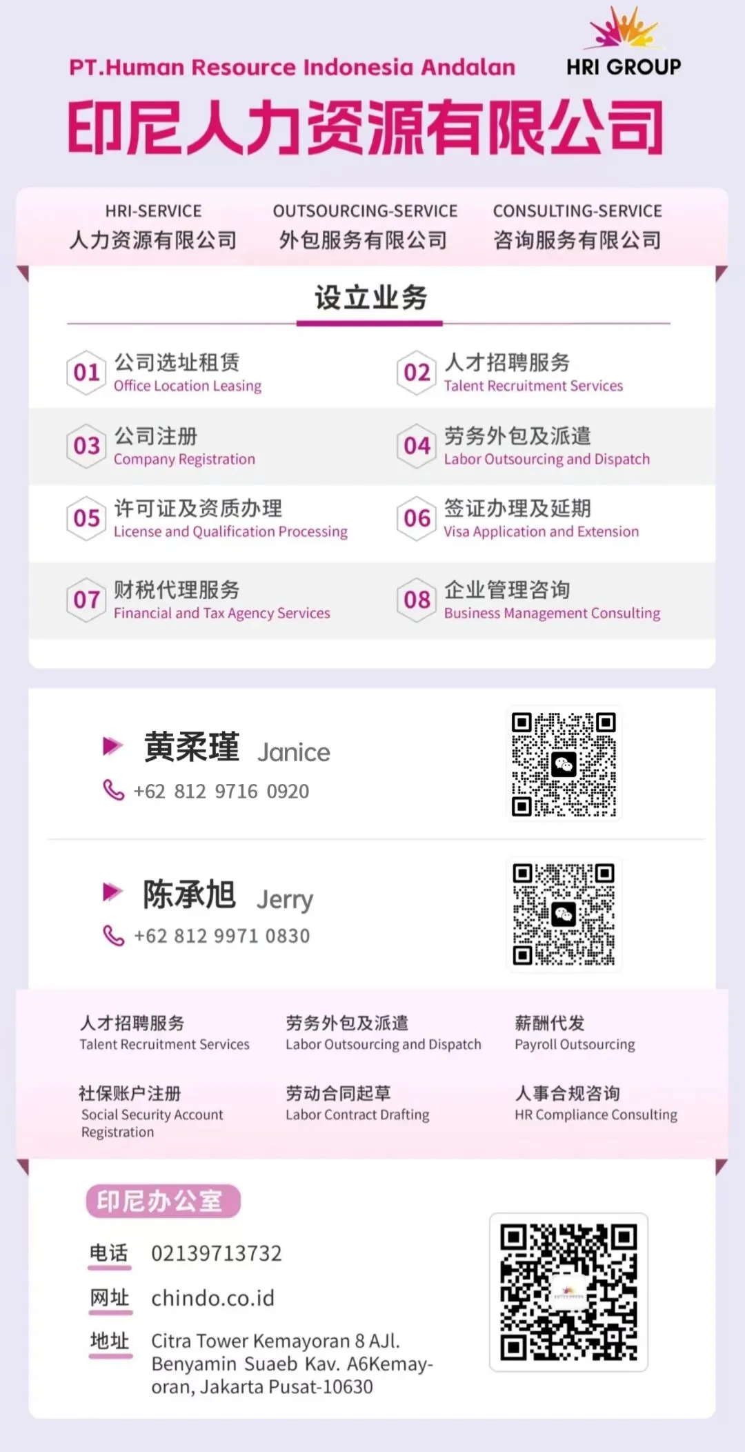 薪资:每月5–10条印尼盾(税前)+ 提供食宿