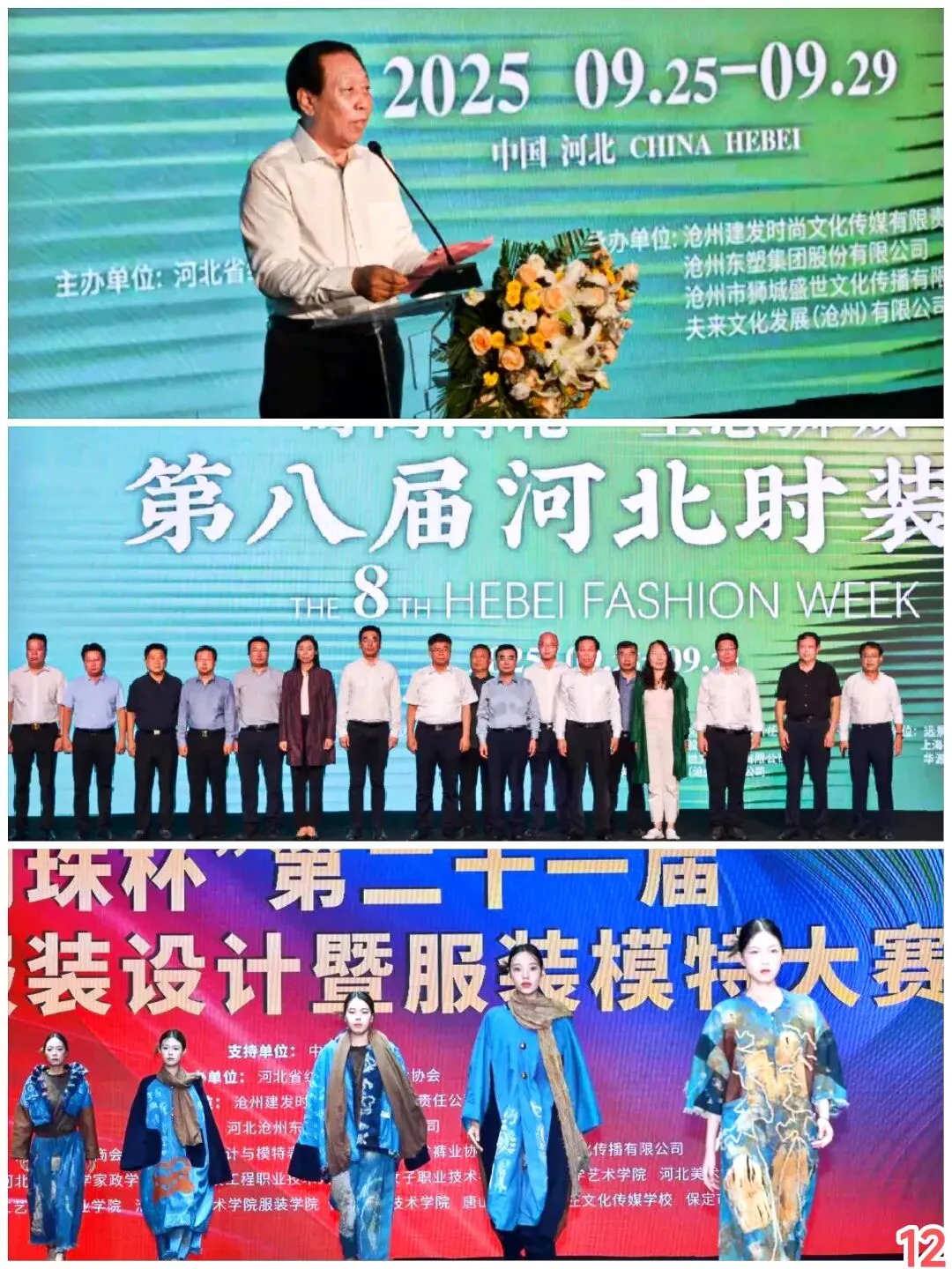 第八届河北时装周9月25日开幕,为期5天,活动内容包括沧州东塑集团冠名的“明珠杯”第二十一届河北省服装设计暨服装模特大赛,“雅尔特杯”首届河北省学生装设计大赛颁奖典礼,省内服装品牌和设计师举办的十余场童装、学生装、高级定制、商务工装、冲锋衣、新中式女装等专场秀,展示了河北省纺织服装创意设计、技术工艺、非遗文化、知名品牌、集群品牌和高校人才培养成果。