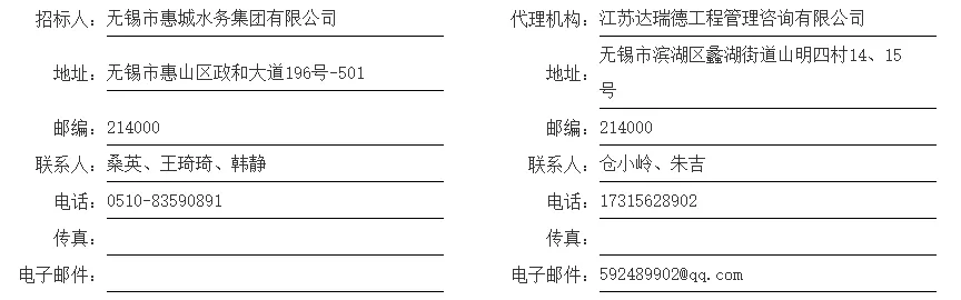 该招标项目招标人为锡市惠城水务集团有限公司,建设资金来自企业自筹。