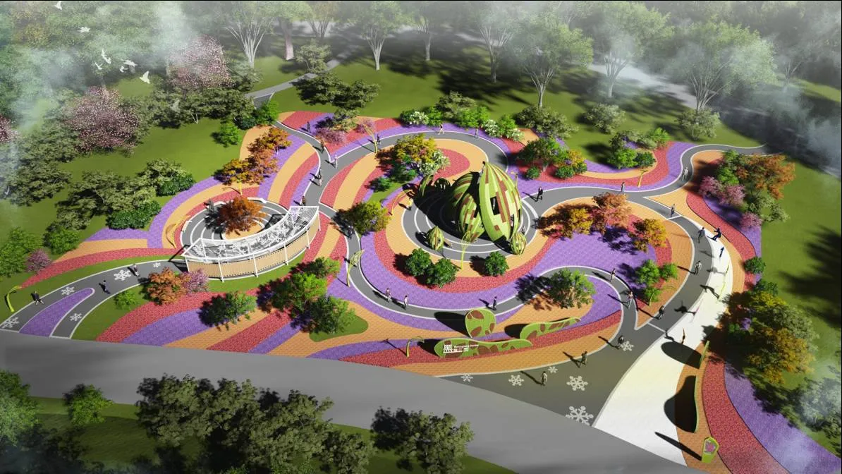 本次花博园的规划结构是“一心、两轴、四岛、多园”。