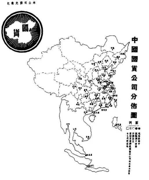 20世纪30年代晚期,国货运动的机构已有相当程度的发展。国货运动所创办的只售国货的临时市场,已经发展成联结国内和东南亚爱国的中国消费者的高速增长的连锁商店(见地图)。通过与地方商店相联结,自下而上地逐渐建立了一种民族化经济。在中国的轮廓上,公司标识(左上)添加了中文字“国货”,象征性地把地理和经济空间联结在一起。