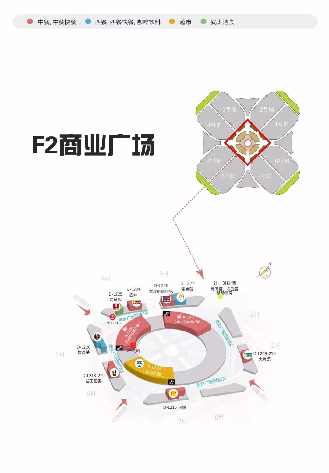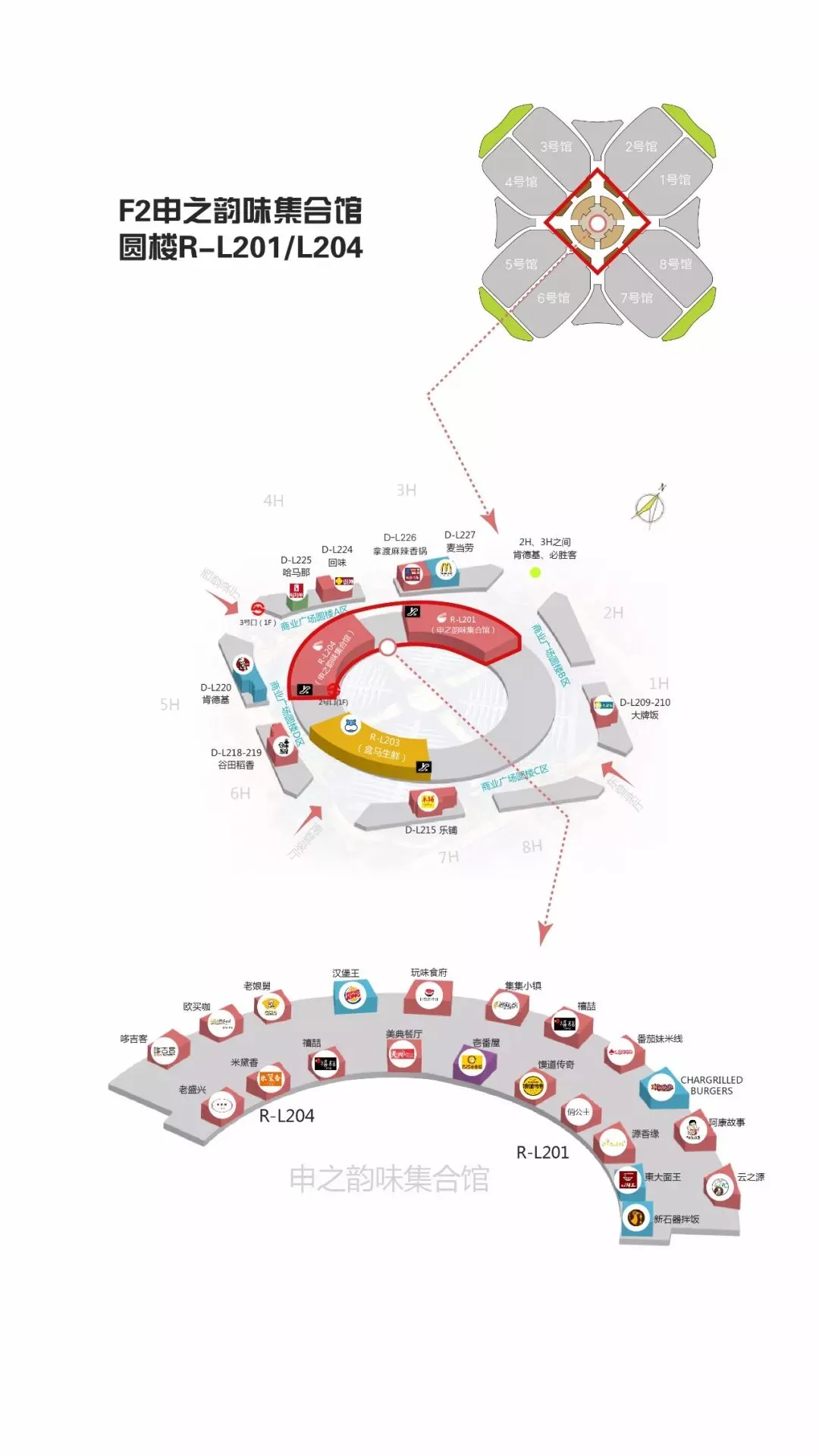 铺位号:圆楼一楼 R-L-107、圆楼三楼 R-L-302、6.2H大食馆