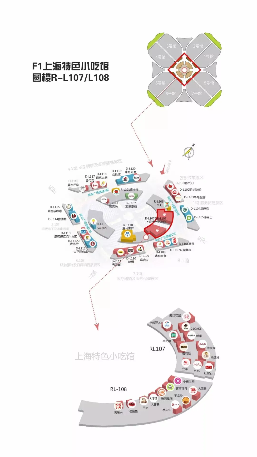 铺位号:圆楼一楼 R-L107(上海特色小吃馆内)、