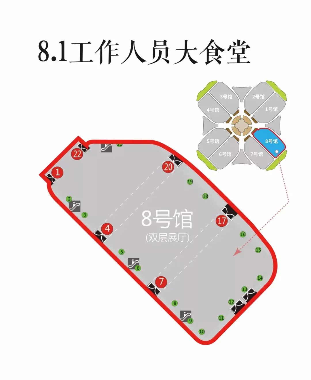 铺位号:位于6.2号馆,集体大食馆设置进出分流