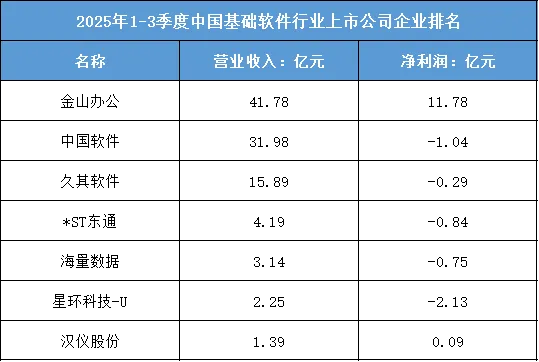2025年1-3季度,中国基础软件行业上市公司呈现“头部独大、盈利分化极端、行业规模待扩容”的格局,既体现了国产基础软件的头部突破,也暴露了行业整体的发展短板。