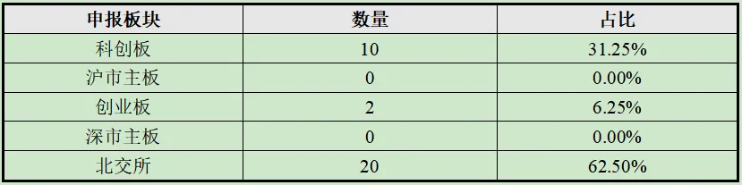 32家IPO在审药企的申报板块分布呈现差异化特征,具体统计如下: