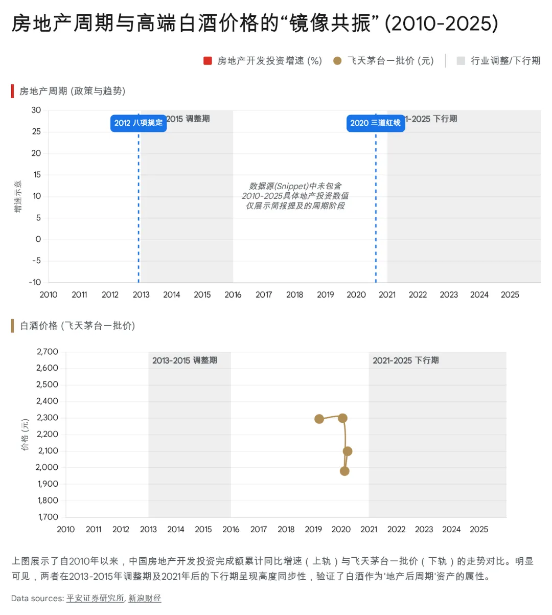 要深刻理解当下的白酒周期,首先必须剥离其作为“酒精饮料”的简单消费属性,还原其作为“社交货币”与“类金融资产”的本质。在过去的三十年间,高端白酒的繁荣与中国宏观经济的资产化进程,特别是房地产市场的繁荣,呈现出高度的绑定关系。
