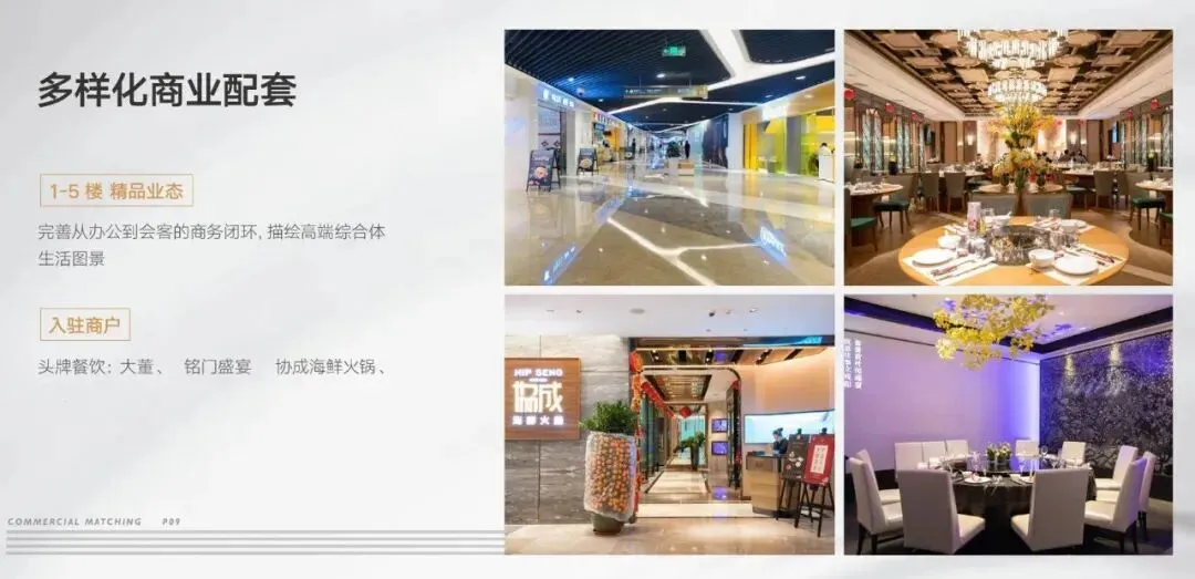 项目1-5F,配备精品业态,完善从办公到会客的商务闭环,描绘高端综合体生活景图。