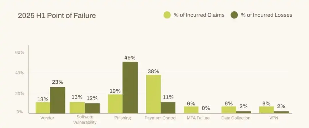 2025年上半年,钓鱼攻击相关赔付金额占全品类赔付总额的49%,而2024年这一比例仅为18%。