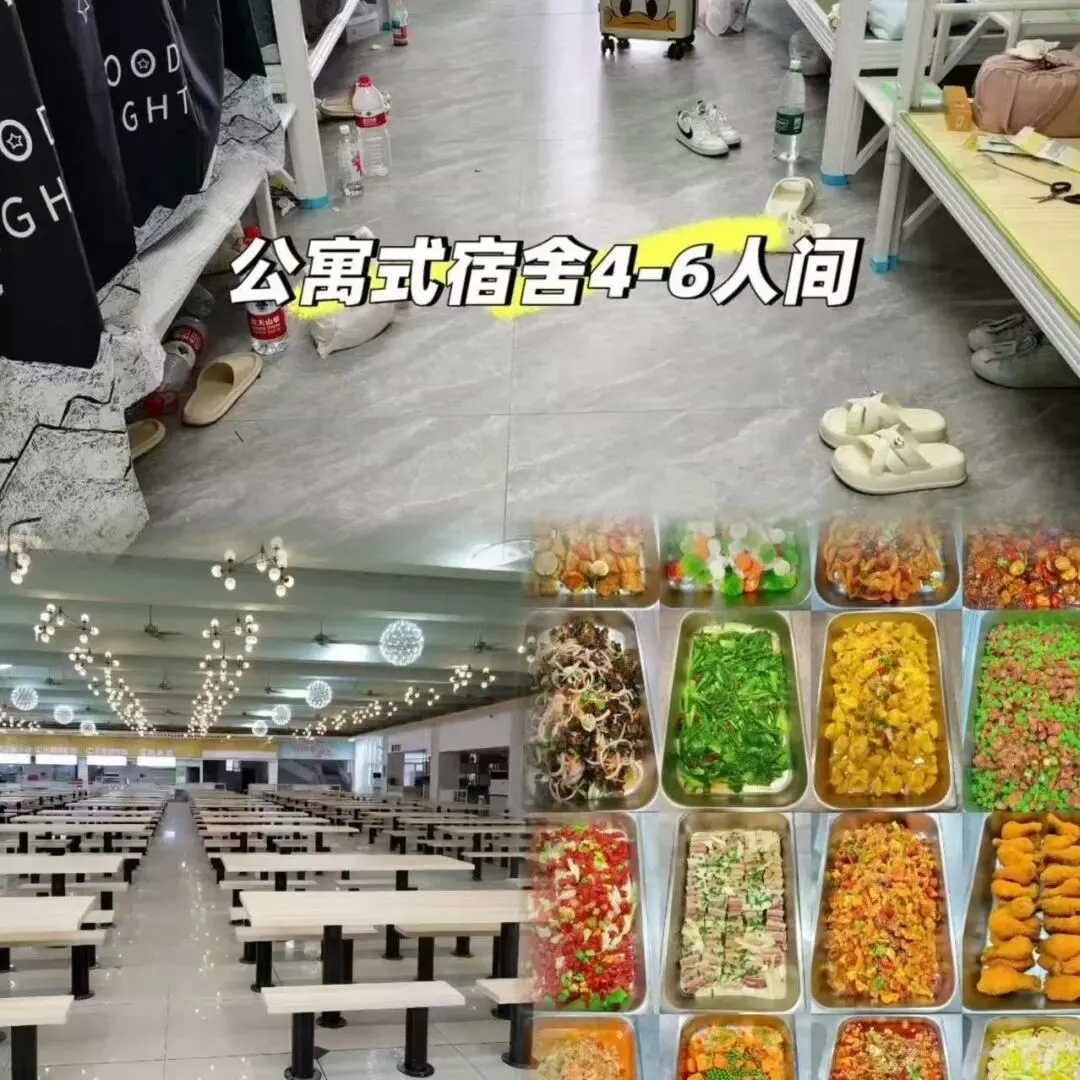 【伙食住宿】包吃包住、标准3菜一汤,公寓室宿舍 6人一间,独立卫生间、配有WIFI、热水、空调、洗衣机、等等!(纯包吃住,不花钱)