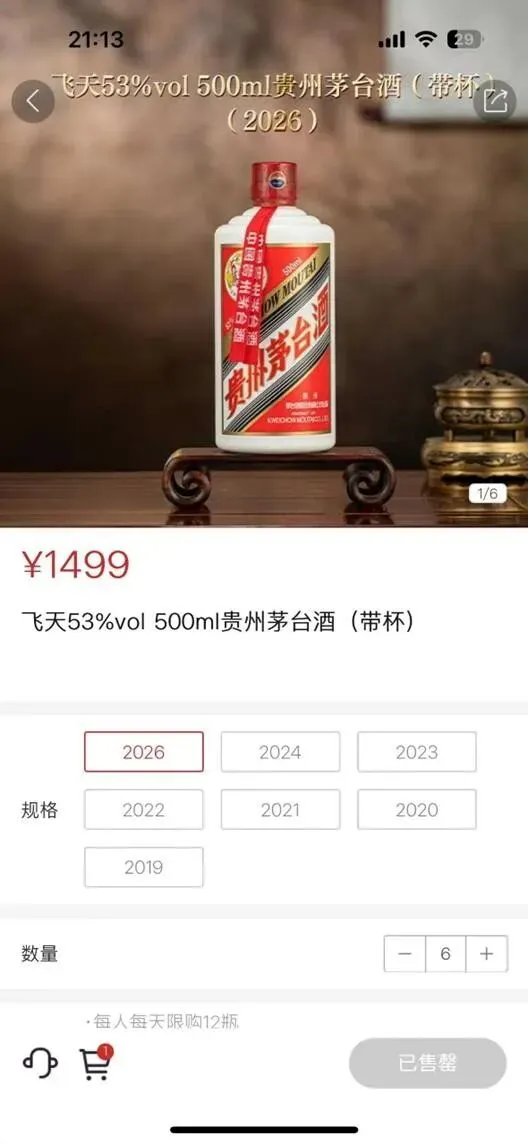 当晚,i茅台官微发布消息,自2026年1月1日起,53%vol 500ml的飞天贵州茅台酒将在“i茅台”APP正式开售。每天早上9点,消费者便可进入APP首页或“i购”频道抢购,不过每人每天最多购买12瓶,即两箱。这一限售政策巧妙地平衡了普通消费者的购买需求与防止黄牛囤货炒价之间的关系。与此同时,2019年至2024年的飞天茅台也一同上架,价格随着年份的增加呈阶梯式上升,但令人意外的是,平台上暂时未出现2025年的飞天茅台。除了飞天系列,精品茅台、生肖系列、陈年酒系列、文化系列、低度酒系列以及茅台酱香系列酒产品也都纷纷上线,产品矩阵丰富多样。
