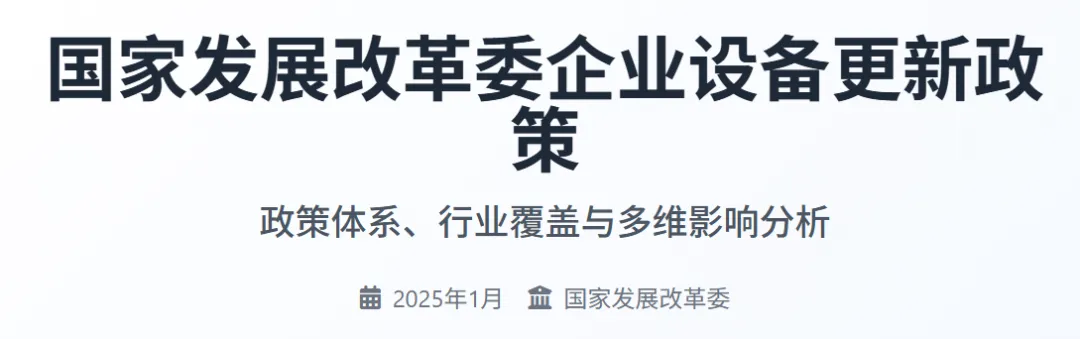 本报告将从政策体系架构、行业覆盖范围、企业决策影响、投资效应评估、制度设计分析和实施效果趋势六个维度,全面剖析国家发展改革委推进企业设备更新政策的核心内容,为企业决策、投资分析和政策研究提供系统性参考。