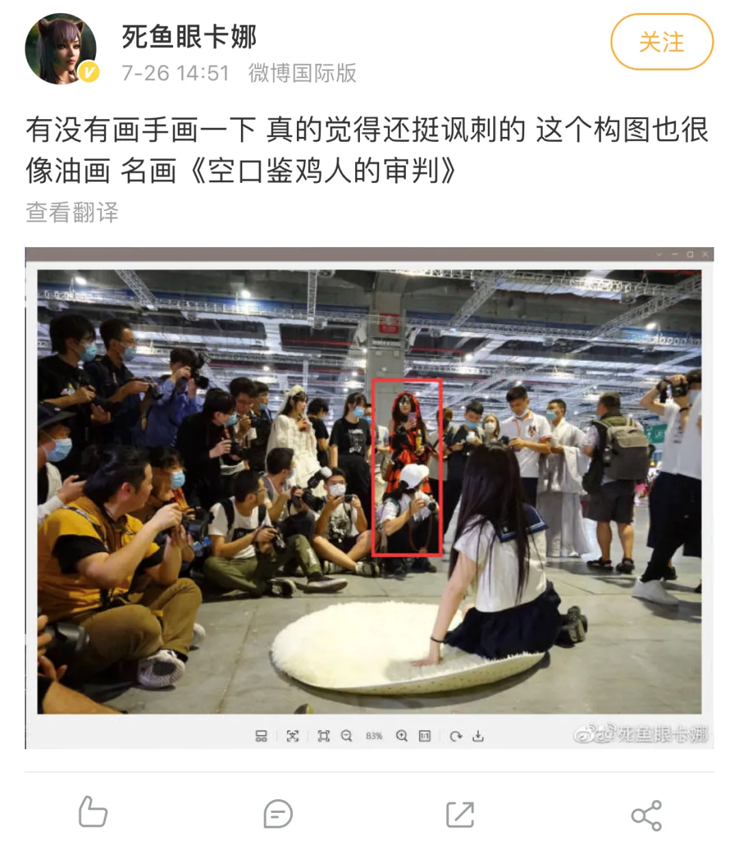 有位博主发了另一个角度的图片,并且问有没有画手画一下这个,感觉像世界名画,在下方评论有好多网友都进行了尝试: