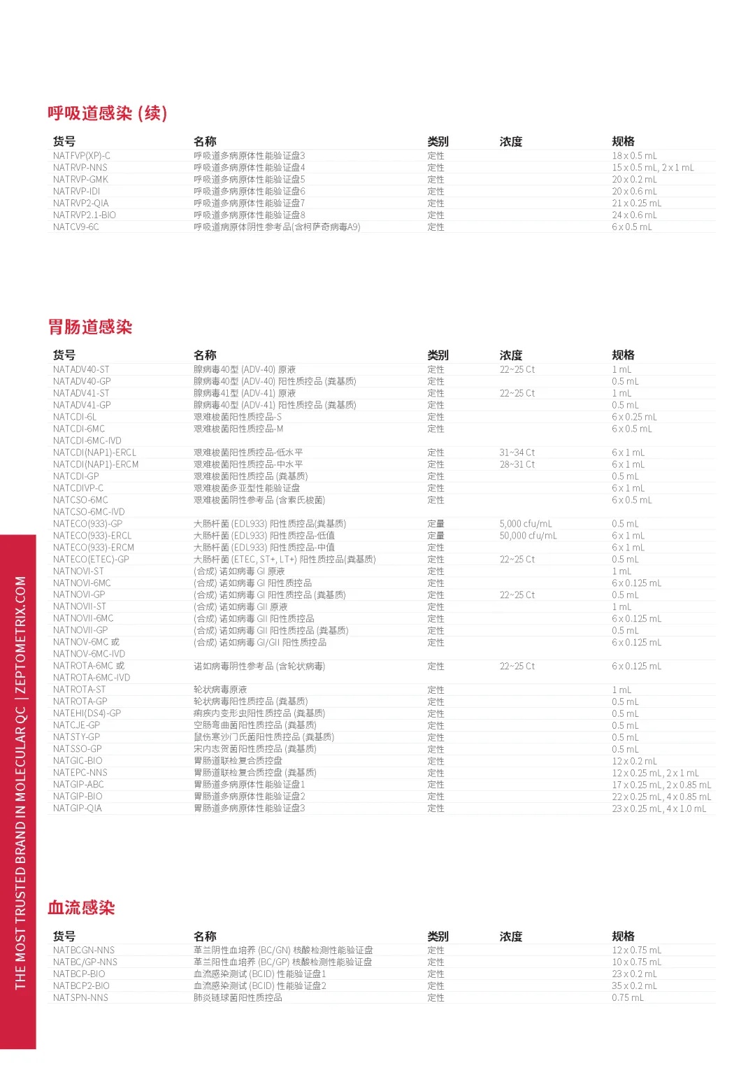 •用于性能验证、批间测试和定期质控