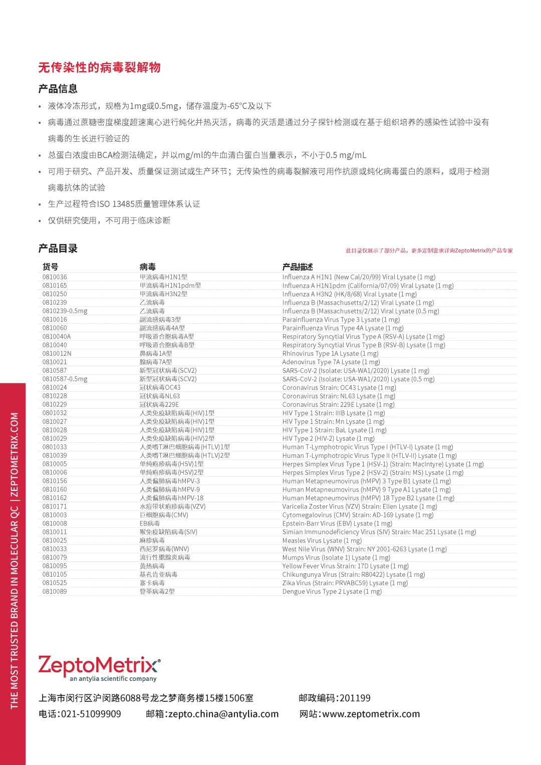同时提供特定蛋白浓度与灭活前TCID50滴度