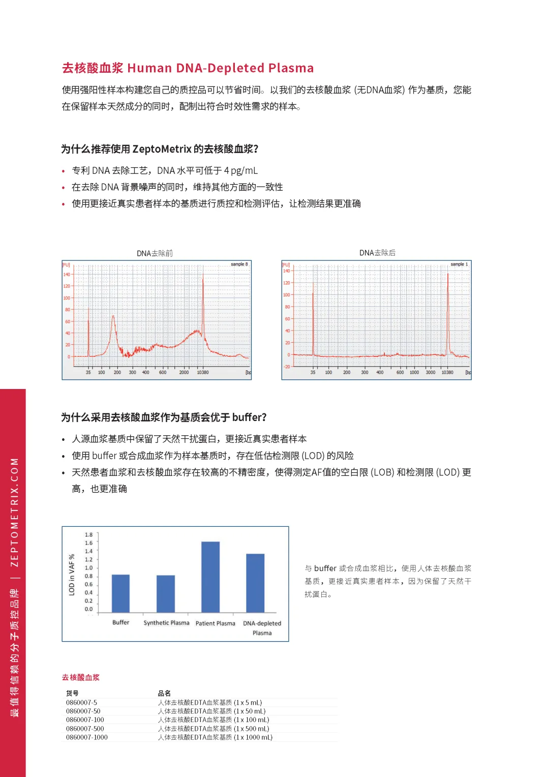 ZeptoMetrix 的肿瘤液体活检质控品和试剂提供一致且准确的结果,可用于分子检测 (NGS和PCR) 开发、验证和实施。包括去核酸血浆和 cfDNA 质控品及相应试剂。