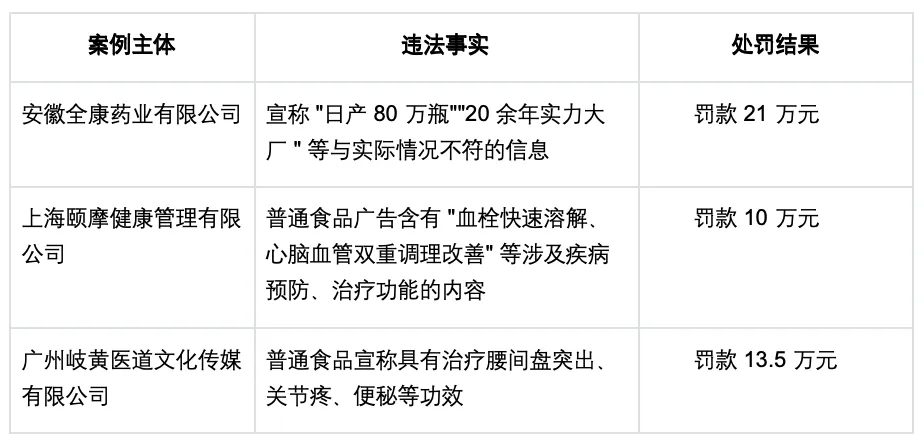 表 2:2025 年食品广告违法典型案例
