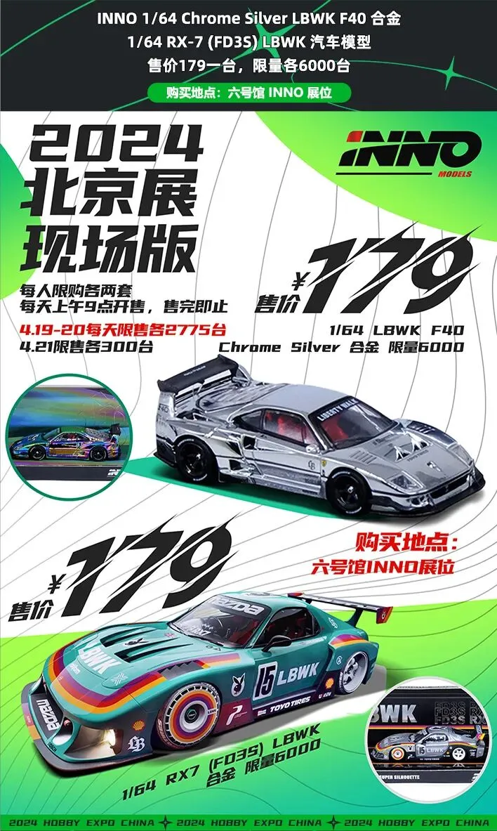 本届 HEC 展会 INNO Models 为大家带来两款汽车模型,两款现场版将在北京展 6 号馆限量发售,每款仅发售 6000 套,每人限各两台,产品采用天地盒包装: