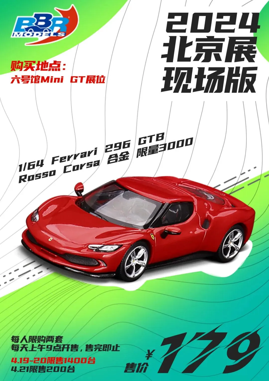 BBR 将带来 2024 HEC 展会版 1:64 比例 Ferrari 296 GTB (Rosso Corsa,FER64001)汽车模型,展会现场发售 3000 台,每人限两台。