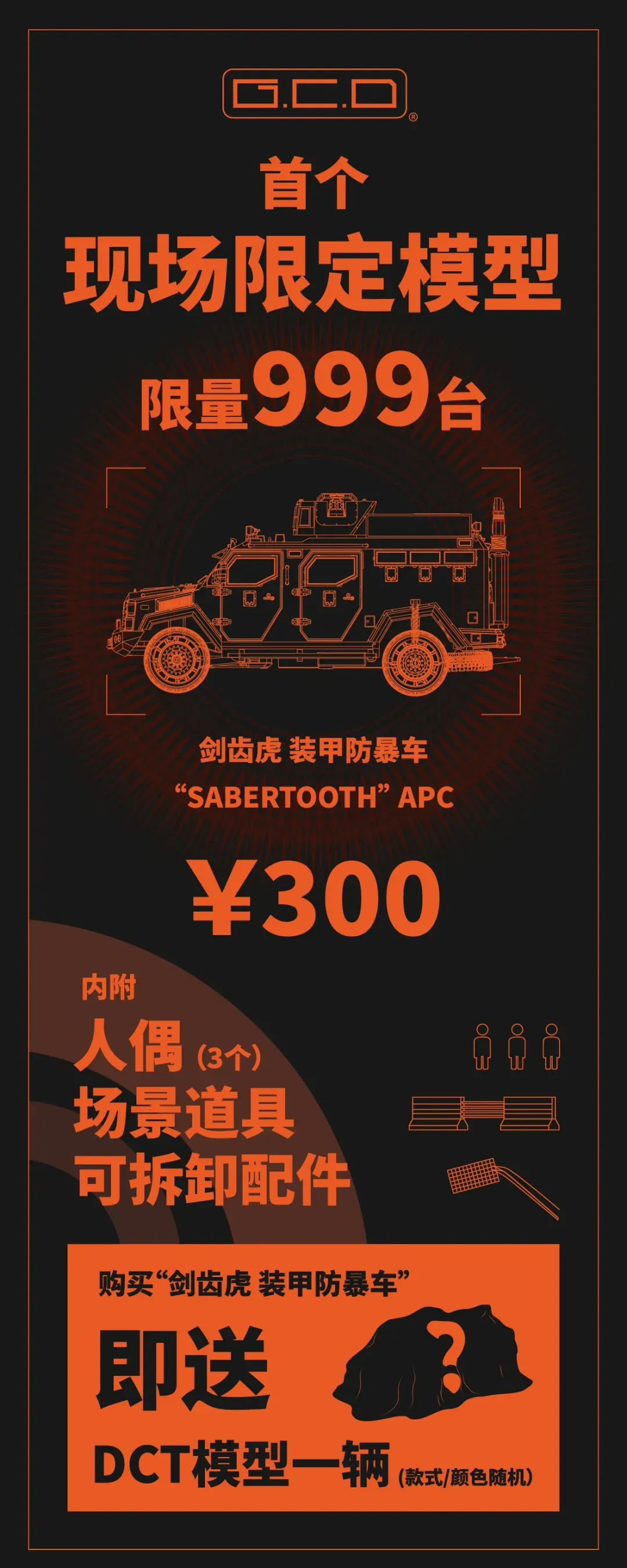 GCD今年正式首次以品牌方身份参展,同时也带来了首次展会特别版车模—重装剑齿虎装甲车,小车并不只是简单的刷色,还有以下变化: