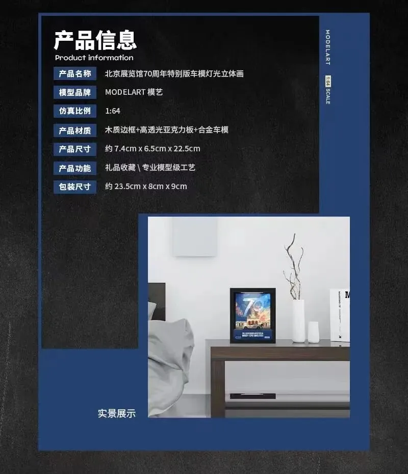 中国北京展览馆建馆 70 周年纪念版车模灯光立体画,限量 99 套,仅在 2024 HEC 展会现场发售,每人限购 1 套(每天限量销售 30 套)官方统一售价 298 元/套。