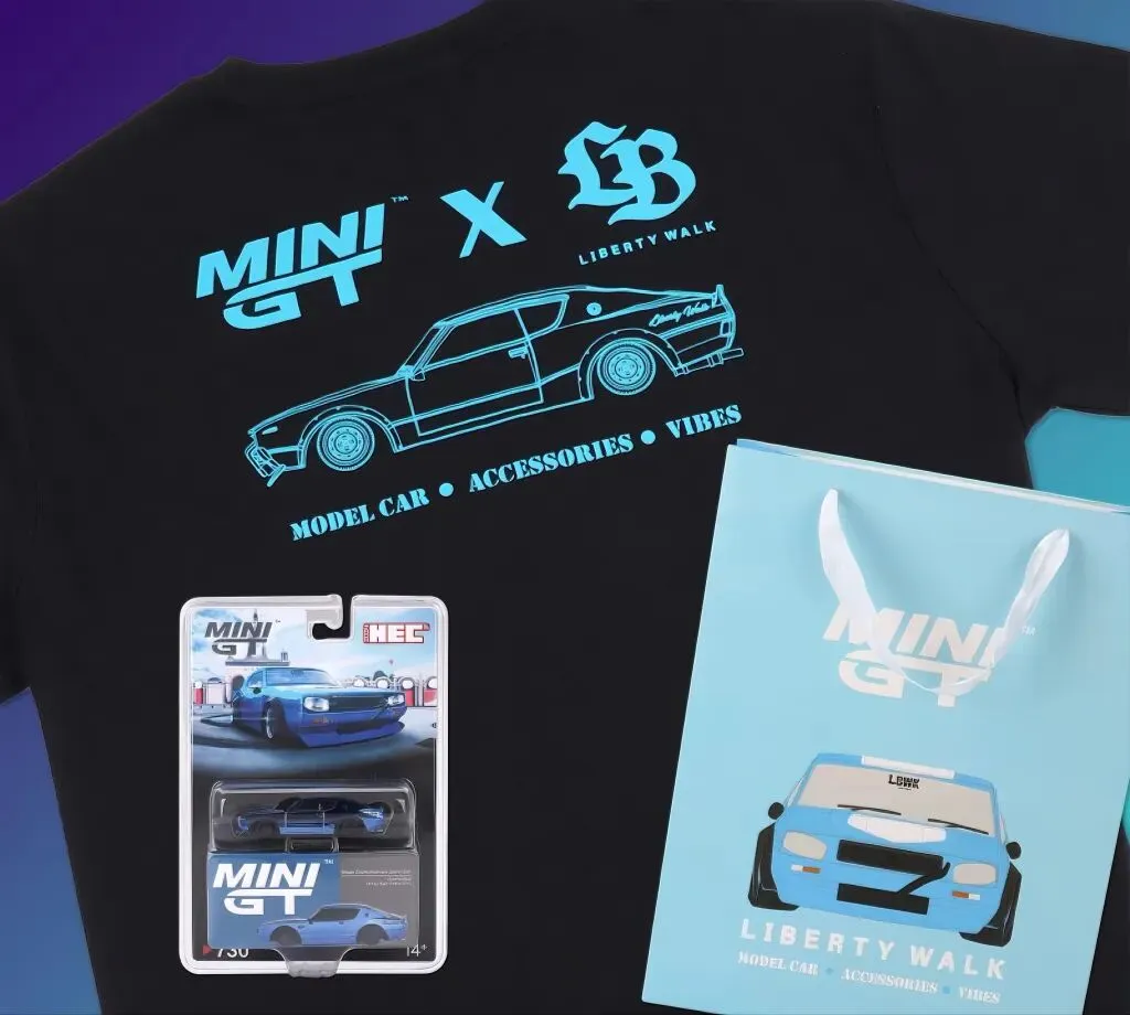 本次 MINI GT 特别为大家推出了现场版 MGT00730 1:64 比例 Nissan Skyline Kenmeri Liberty Walk(Chrome Blue)汽车模型。其套装内容丰富,包括 2024 北京展限定模型一台、MINI GT x Liberty Walk 品牌联名 T恤一件,以及一款精美的展会版礼品袋!套装数量有限,现场发售 5000 套,每人限购两套。