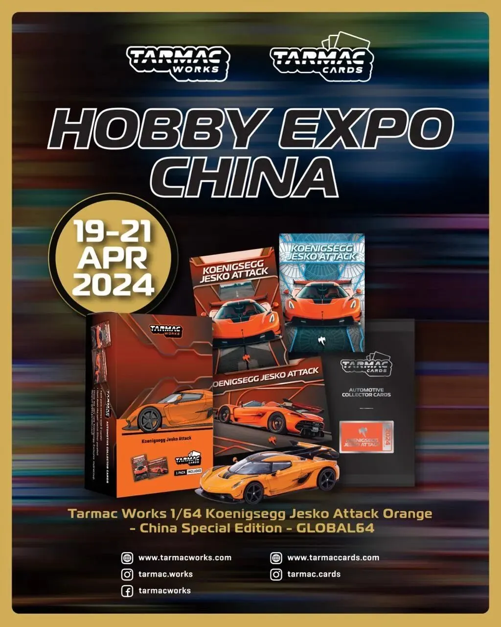 Tarmac Works 将在 2024 中国国际模型博览会首发 Trading card 珍藏卡系列产品!套装内含 1:64 合金材质 Koenigsegg Jesko Attack(Orange,T64G-TLO52-OR)汽车模型 + 2 张珍藏卡。限量 3500 套,每人限两套。