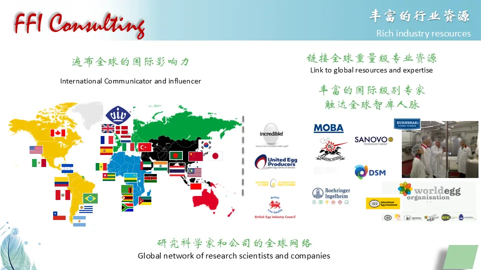 Vincent 在家禽和蛋类领域工作了近30年,涉及新产品研发、质量保证、生产和营销等多个领域。他还代表全球鸡蛋部门参加了世界动物卫生组织(OIE)、联合国粮农组织 (FAO) 和世界银行等多个国际组织。Vincent 还为IEC (国际鸡蛋委员会担任了5年的科学顾问。