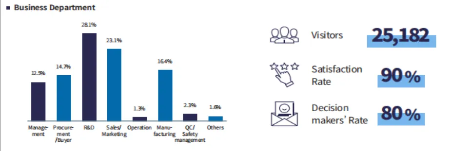 2025 年该展会的强大吸引力展露无遗。展览面积达 12445 平方米,为 339 家来自全球 21 个国家的参展企业,提供了充足的展示舞台。主要来自电器/电子机器制作公司、半导体及其组装业、汽车/运送器械制作业、EMS业、通讯设备制作业、测量设备制作业 、医疗设备制作业、光学设备制作业、生产控制及工业自动化设备制作业及其它电子商品制作公司等。