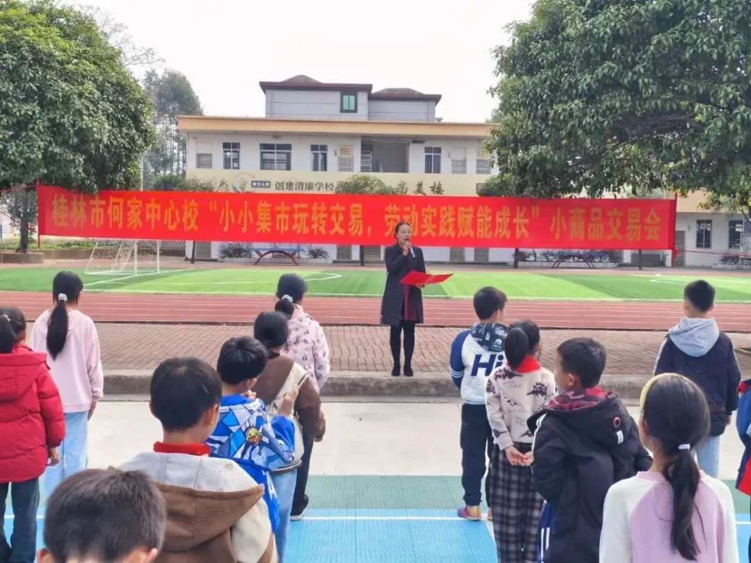 2025年12月31日下午,桂林市何家中心校校园内人声鼎沸、热闹非凡,一场以“小小集市玩转交易,劳动实践赋能成长”为主题的小商品交易会如期启幕,全校师生齐聚校园,在欢乐的交易氛围中迎接2026年的到来。