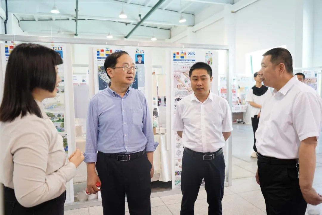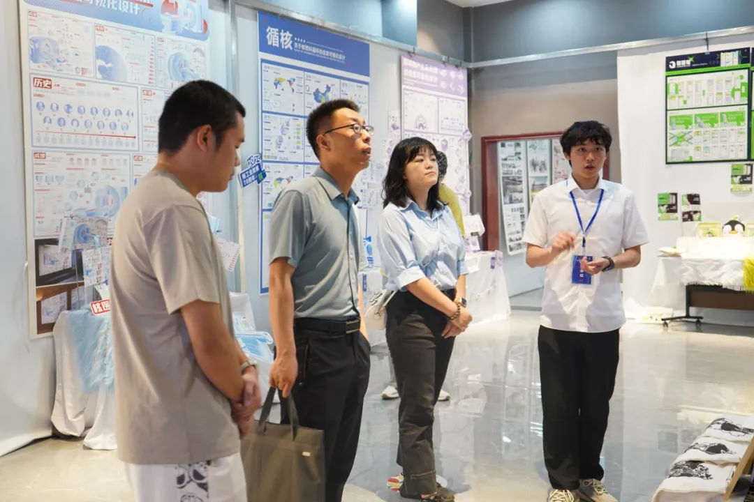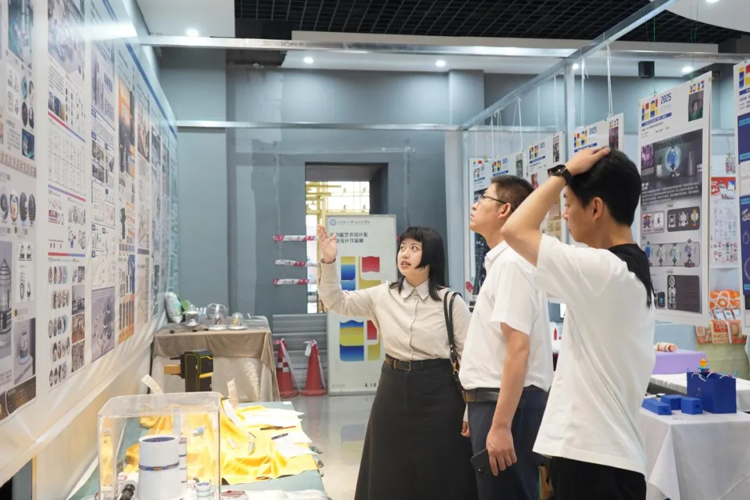 踏入展厅,校党政领导们即被丰富多样的毕业设计作品所吸引。展区内,各类别作品分区陈列,涵盖 “核工业主题” “非遗传统文化创新”“地域文化”“新媒体技术”“人工智能” 等方向,每一件作品都饱含着学子们的巧思妙想与专业积淀。