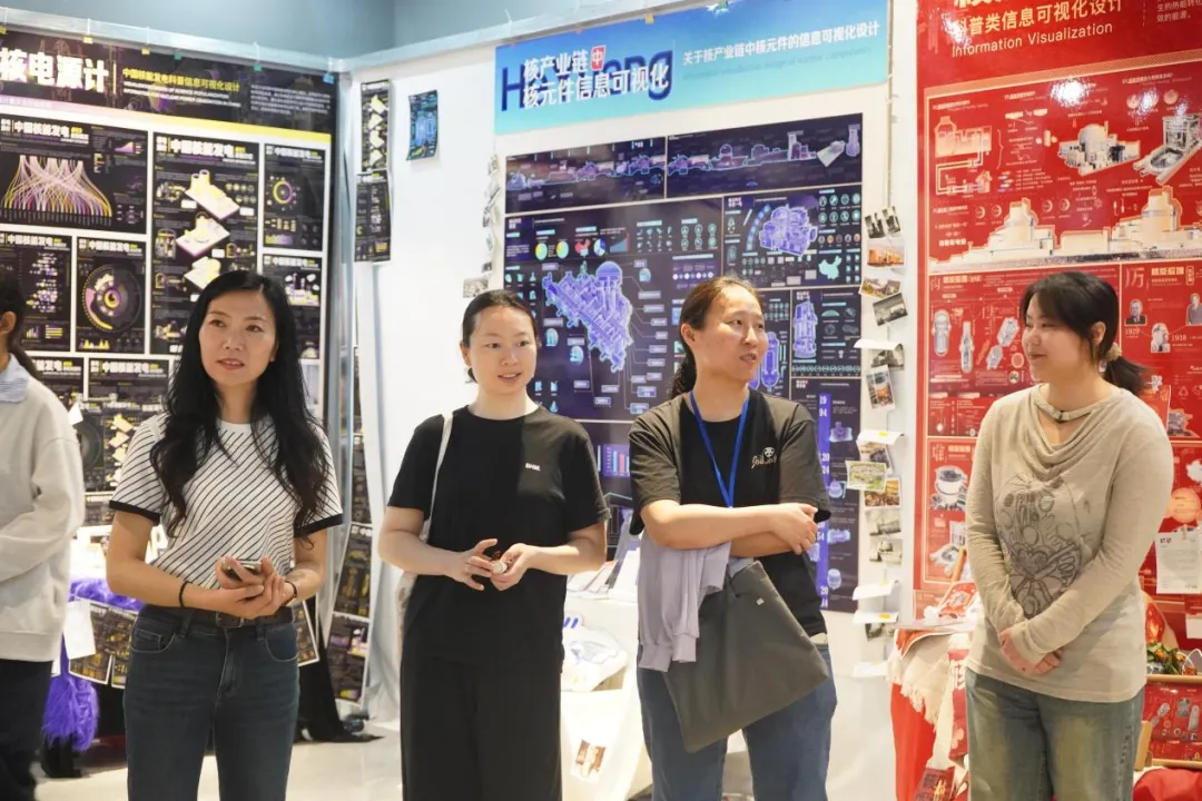 在核工业主题展区,毕业生们展示了一系列围绕核聚变、核能发电等前沿科技的创意设计。一幅幅作品通过信息可视化的方式,将复杂的核工业技术转化为直观易懂的图形和图表。嘉宾们在参观过程中,不时驻足,认真听取学生代表的讲解,对同学们如何将科学知识与艺术设计有机结合表示高度认可。专业教师介绍道,这些作品不仅展示了同学们扎实的专业知识,更体现了他们对核工业未来发展的深刻理解和独特见解。