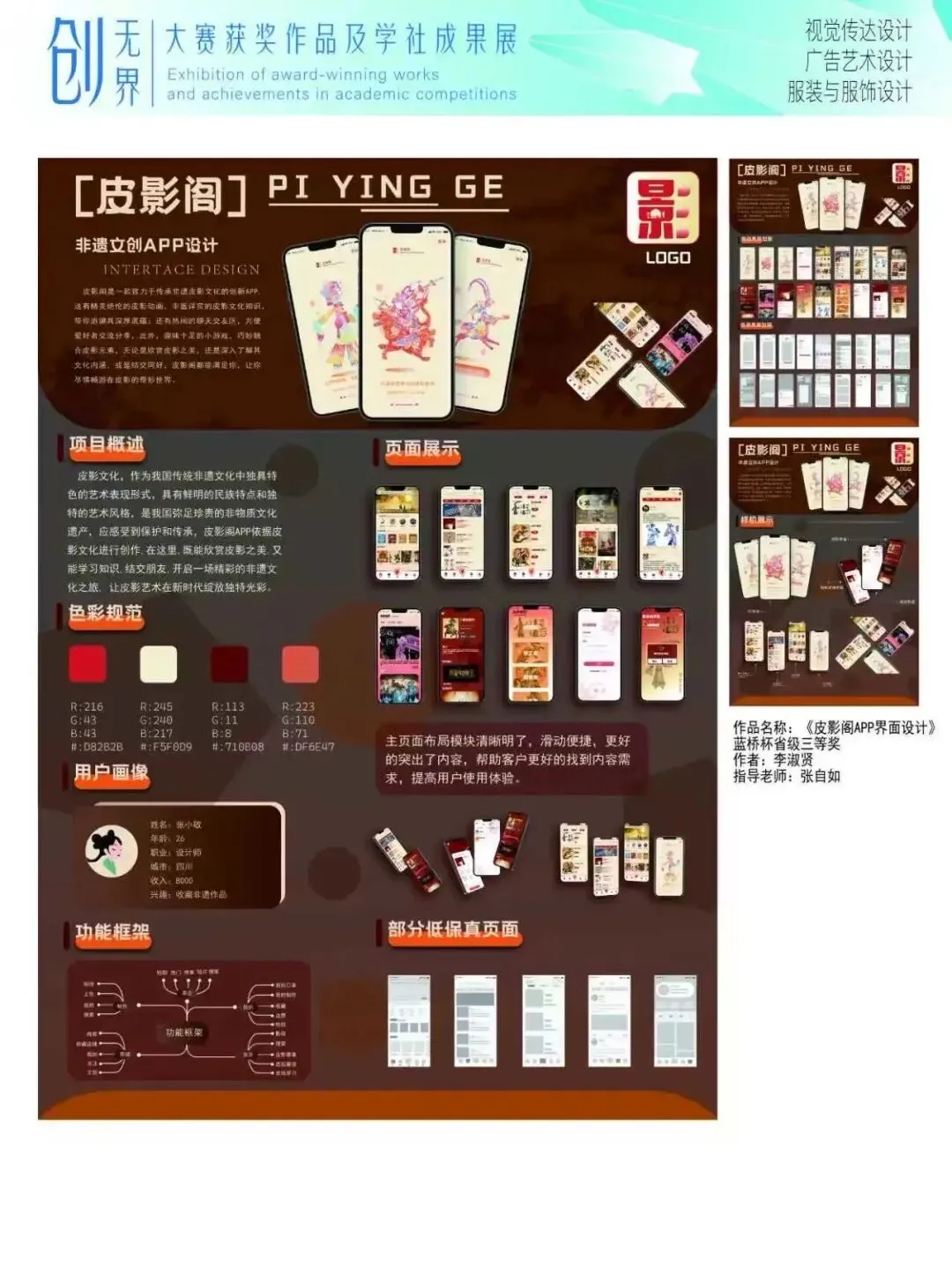 本次展览内容涵盖文创产品、IP形象、海报、UI、包装、时尚设计等多元领域,既体现了对传统文化的传承,也展现了与现代科技的融合。丰富多样的作品不仅呈现了独特的视觉效果,更折射出当代设计语境的新形态,集中展示了我院在艺术设计人才培养方面的扎实成果。现场师生纷纷驻足观看与交流,气氛热烈。