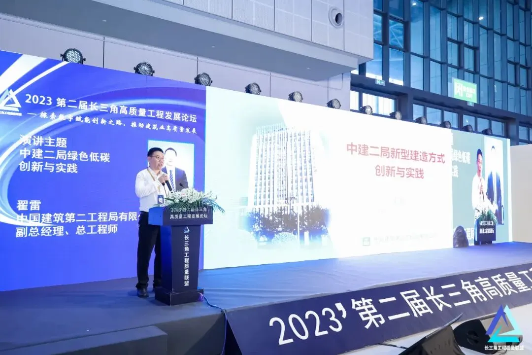 受局党委委托,局副总经理、总工程师翟雷代表中建二局就《中建二局新型建造方式创新与实践》在论坛上发表主题演讲,分享了中建二局在建筑工程建造过程中,实现建造过程“节能环保,提高效率,提升品质,保障安全”的新型工程建设组织模式。他表示,制造业“两化融合”正以前所未有的速度改变工业生产方式,引领“中国制造”向“中国智造”转型。未来,中建二局将继续以“绿色发展”为目标导向,以新型建造方式为抓手,与各单位携手,推动建筑企业转型升级,为长三角一体化发展贡献二局力量。