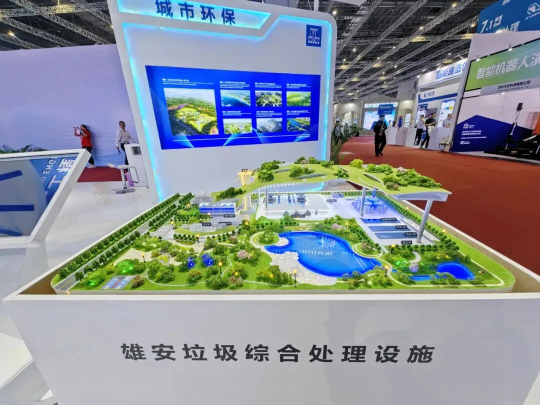 中建二局积极响应“碳达峰、碳中和”目标和环境保护等国家战略,积极投身城市更新、水务环保、零碳社区项目的规划、设计及实施,形成中建二局特色业务模式。在城市环保展区,我国首个隐藏式垃圾综合处理设施--雄安垃圾综合处理设施模型,吸引了众多嘉宾在此驻足。项目作为“无废雄安新区”建设的重要环节,立足高规格“雄安标准”,最大程度实现废物协同处理,建成后垃圾日处理量可达3060吨以上。项目践行零填埋理念,湿地景观与现代工业融为一体,应用先进的烟气技术、城市垃圾固废协同处理等多项“绿色高科技”实现超低污排放,达到世界领先水平。此外,中建二局在贯彻落实国家生态文明建设的发展战略中,还建造了一大批低碳环保项目。参与了10余个长江大保护项目,完成了40余个固体废弃物处理处置项目,烟气治理项目120余个。中建二局是中国建筑唯一一家、我国仅有的4家《民用和安全设备安装许可证》并具备核岛土建施工能力及业绩的土建施工单位之一,从事光伏发电业务15年,是国内最早进入风电建设领域的企业之一。同时在抽水蓄能、引水工程等领域加速布局,持续激活新动能,推动核电、光伏发电、风电、抽水蓄能可再生能源投建运业务,为服务国家“双碳”战略要求打下坚实基础。惠州太平岭“华龙一号”核电项目核岛模型,展示了双层安全壳、核反应堆、环形吊车三个部分,向参观嘉宾形象地展示了核电这一清洁能源的基本情况。中建二局是我国首家“华龙一号”河道全专业BIM技术应用单位,标志着中国核电建设正朝着更严谨、更科学、更高效的目标迈进。另外,该项目IMS核电施工管理系统、施工全场景视频监管系统等一应俱全,实现了核岛钢衬里轻型焊接机器人等智慧建造技术应用。随着全球新能源产业重心进一步向中国转移,中建二局在核电、光伏发电、风电、抽水蓄能领域不断深耕。从1987年参加广东大亚湾核电站建设以来,中建二局参与全国在建机组装机容量二分之一,参建核电机组25台(占比49%),成为国内唯一一家掌握欧洲三代核电厂、核岛、常规岛施工一体化技术的综合施工企业。中建二局作为国内唯一一家承建过享誉世界的三大主题乐园的总承包单位,以匠心点亮文旅奇梦,打造休闲旅游新地标,不断续写文旅品牌的辉煌与荣耀。在文化旅游展区,讲解员向参观嘉宾介绍了由中建二局承建的全球首个迪士尼宝藏湾工程和北京环球影城的建设过程。在全球首个迪士尼宝藏湾工程建设中,施工团队运用多项创新技术,在国内首次使用水下直线电机驱动技术,首次将航天空洞设备用于舞台表演,打造出了全国首个同时摘得鲁班奖、詹天佑奖的文旅项目。在北京环球影城,中建二局承建园内两个主题乐园体量最大的施工标段,包括侏罗纪世界与小黄人乐园两个片区,建筑面积不足5万平米,而占地面积达13.9万平米。项目包含超高塑石假山、黑暗骑乘、剧院、高端餐饮以及后勤配套用房等12座建筑单体,以及囊扩近1000棵乔木、仿真树,29500平方米彩色混凝土,4000平方米石材铺装的室外区域开发,现已获得鲁班奖。在高效建造展区,展示的是中建二局较为完备的工业化产业链,拥有PC构件和钢结构两大装配式制造基地,从事集成房屋、环保设备等百余种设备产品的研发与生产。