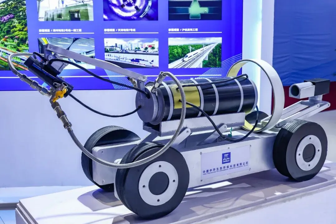 在智能建造展区,管道非开挖修复机器人模型向大家展示了第三代管网修复技术,通过在管道中喷涂多层强化高分子材料达到修复管网的目的,为城市管网的健康绿色运营提供高效保障。