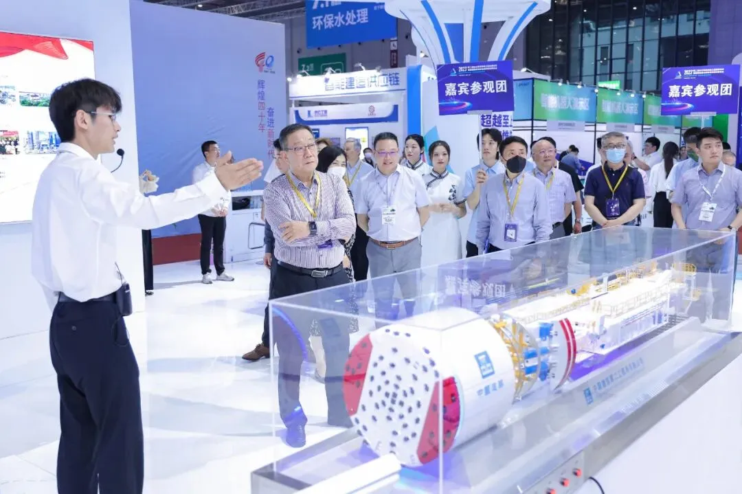 另一边的盾构机模型吸引了众多参观者的目光,盾构机是地铁隧道施工中的“钢铁蚯蚓”,具有施工速度快、自动化程度高、节省人力等特点。中建二局始终主动服务国家发展战略,服务民生需求,助推加快建设交通强国,目前已有“超越一号”“超越二号”“攻坚一号”等盾构机投入使用,“攻坚一号”盾构机是中建系统目前第一台大直径双模盾构,可以有效保证刀盘和中心滚刀的稳定性与安全性,为实现在本区间快速、高效、安全掘进提供设备保障。此外,为大力发展智能建造,以科技创新推动建筑业转型发展,中建二局广东建设基地双层办公楼采用原位3D建筑打印技术,是全国乃至国际最大的原位3D打印建造技术项目。欢迎转载,转载请注明出处