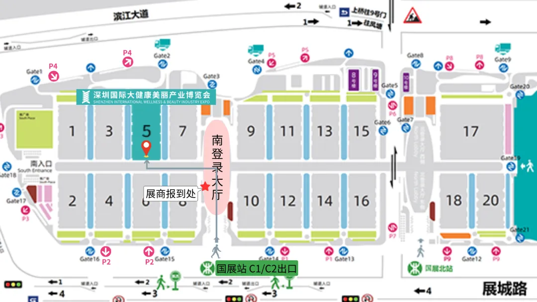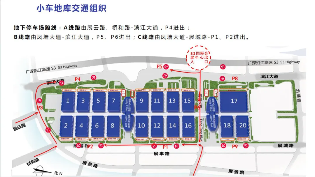 导航:"深圳国际会展中心P2或P4地下停车场入口”,到达后根据现场指引入馆参观