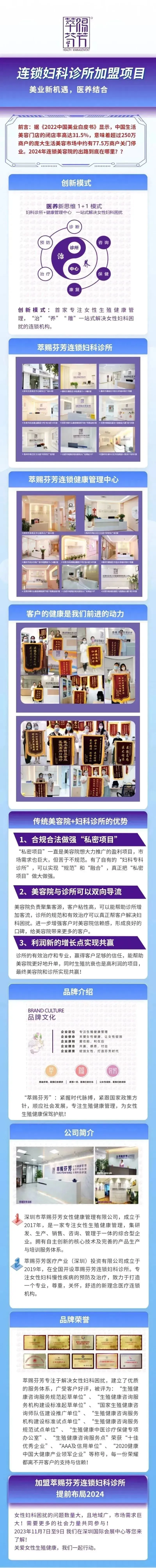 2023年11月7-8日,深圳国际大健康美丽产业博览会联合深圳市医点通管理咨询有限公司隆重推出“决战轻医美特别版”——轻医美高峰论坛,隆重邀请重量级行业一线大咖与资深运营导师,以实战解码方式,现场深度剖析轻医美单店盈利模型,轻医美产品线设计、爆品打造以及流量爆破体系构建。与资深行业人员交流轻医美行业的经营方式。