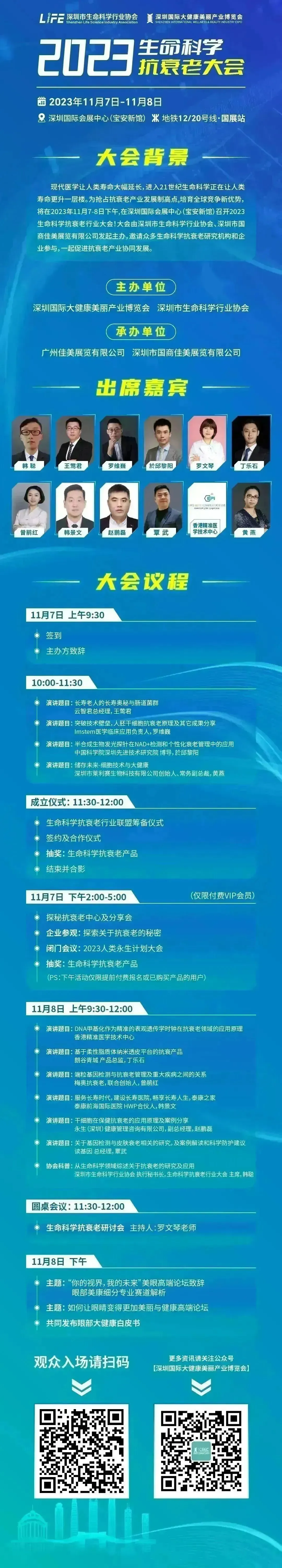 为抢占抗衰老产业市场发展先机,探索全球竞争新优势,2023年11月7-8日,2023生命科学抗衰老行业大会将在深圳国际会展中心(宝安新馆)召开!大会由深圳国际大健康美丽产业博览会、深圳市生命科学行业协会发起主办,邀请众多生命科学抗衰老研究机构和企业参与,一起促进抗衰老产业协同发展。