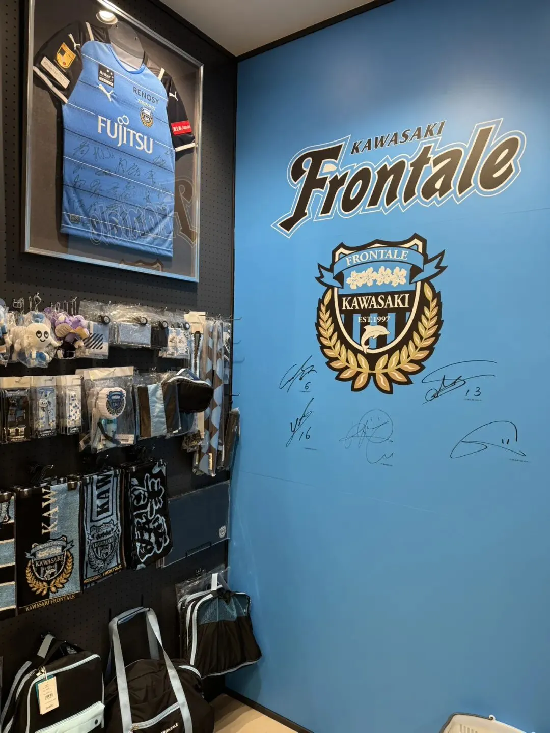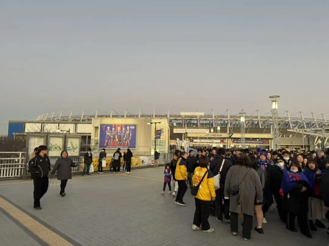 下榻在川崎的东横inn,靠近车站,而且即使在圣诞期间,价格也不算贵。不过晚上似乎有些噪音,让我总有些惴惴不安。酒店还能选择免费的早餐服务,对我这种早上起来毫无食欲的类型来说,意义不大。出门第一件事先去把便利店的票取了,日本还保留着便利店取纸质票的传统。虽然我是高猫FC轮次的抽选,但居然把我发配到了二楼的糟糕席位,而当圣诞节当天到达会场时,看到更好的位置其实有不少空位,这让我感到很不满。可怜一般轮次的票,番号倒还不错。第二天起床后,川崎笼罩在一片蒙蒙细雨中,川崎不愧是Gbc的主场,无论是A店还是塔店都有不少相关元素。川崎前锋的元素也遍布大街小巷,我斥巨资,买了一件日本队新赛季的球衣,效果图看着一般,上身效果倒很不错。