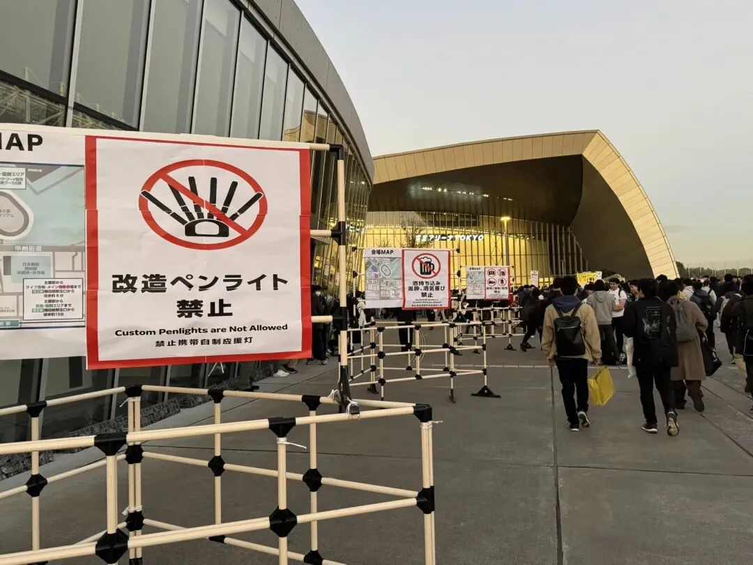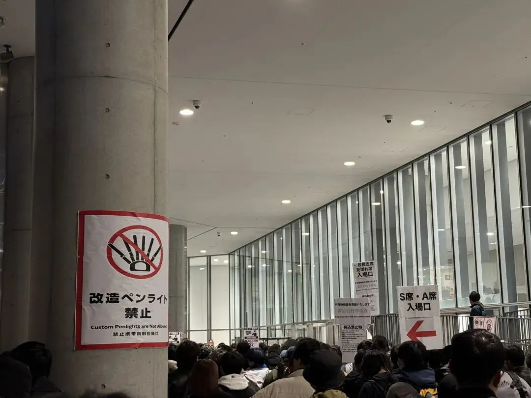 武藏也位于府中市,离东京核心区有一个小时的车程,交通谈不上便利。武藏也(京王アリーナ)毗邻味之素体育场,恰巧,当天又碰上了东京FC的市场比赛,小小的飞田给站人满为患。跟着两波人流,慢慢向场馆蠕动。说实话,我并不期待Mygo的Live,十月在上海举办的狗鸡对邦,但从内容而言完全不能打动我,而主唱的发挥,也足够令人失望。再加上无论如何,我多多少少都对看Mygo的群体抱有一定的特殊意见。所以今天来,主要是以体验为主。毕竟运气爆棚,几张抽选便中了S席,这种机会还是理应珍惜的。入场门口,国语不绝于耳,连入场须知都只用了日中(英?)书写。一切都与我的预想相差无几,但事实证明,这场Live将彻底改变我过去的看法。