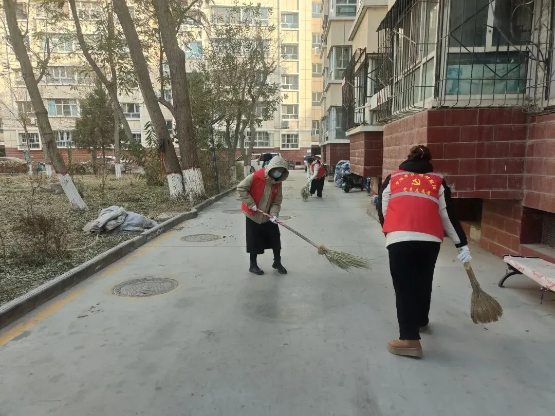 4.组织20名党员志愿者参与社区“清洁家园”活动,对社区公共设施、楼道等区域开展拉网式大扫除,让小区环境旧貌换新颜。