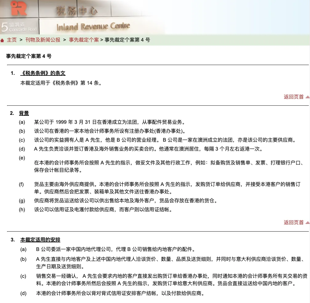 本案例中,虽然有关买卖合约由长期居住在澳洲的A先生直接与中国和海外达成,但从贸易利润的全部运作来看,利润的所得来源地还是香港。